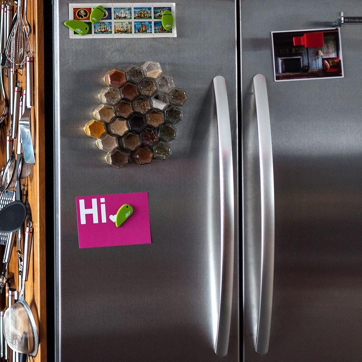 With spices in sight, you'll use them more often, dishing up fabulous flavorful food. This set of organic spices come in magnetic jars that are reusable for future spices. Hexagonal shape fits together creating a spice-colored honeycomb pattern on your fridge. Build your own set of organic spices to match your pantry. Item details: