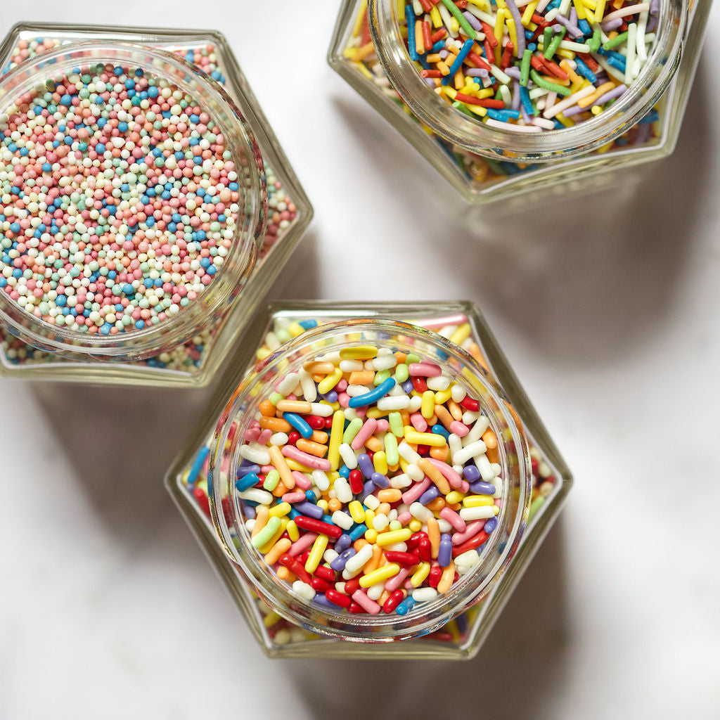 - 🌈 Rainbow Crunchies: Classic nonpareil-style crunch with natural color.